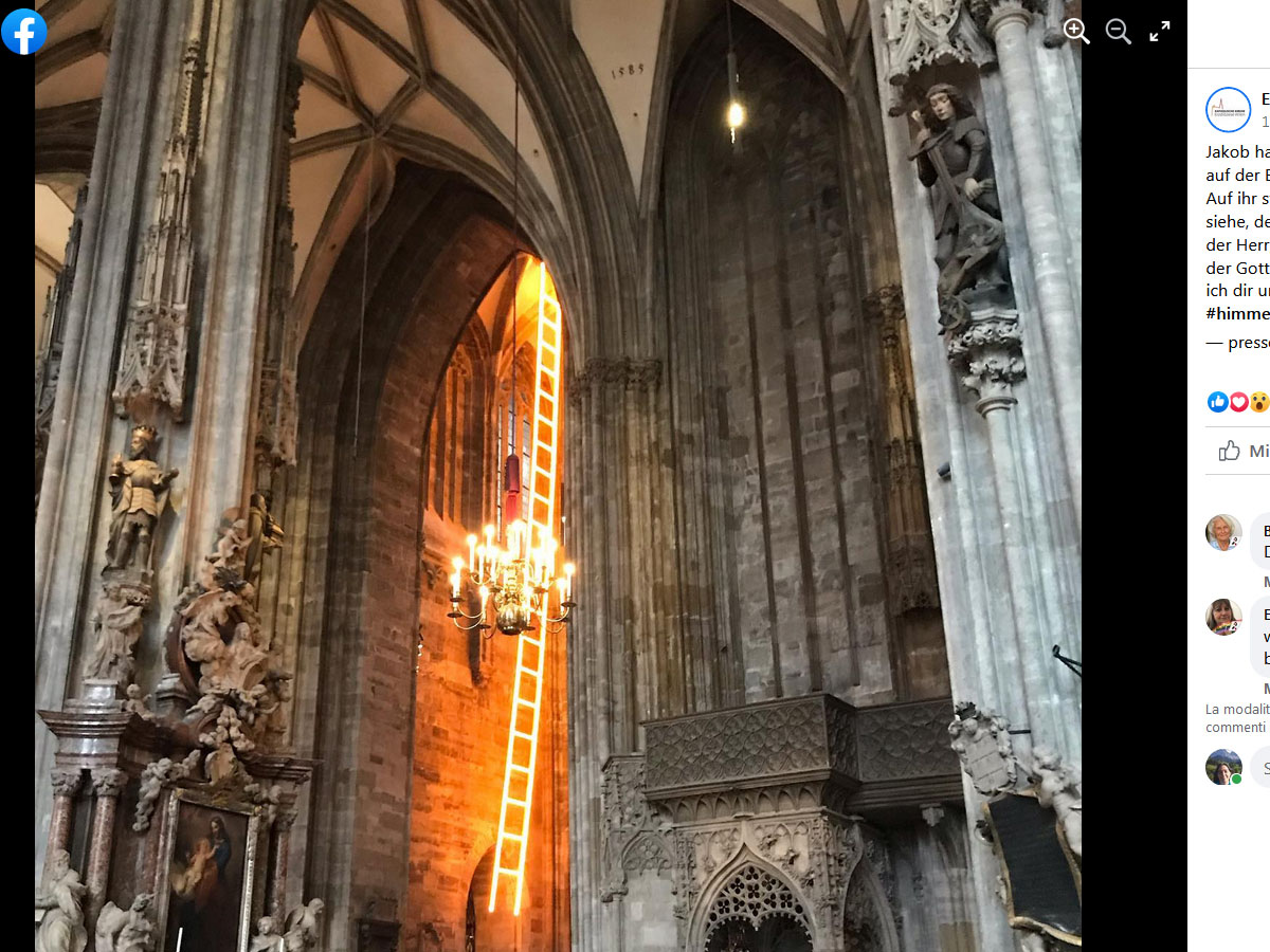 La “Himmelsleiter” è stata accesa durante la veglia di Pasqua. E, come la scala sognata da Giacobbe, va dalla terra al cielo.